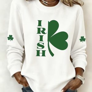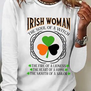 St. Patrick’s Day Women’s T Shirt Graphic Shamrock Letter Stylish Classic Casual Long Sleeve Crew Neck Regular Tops Daily Print Blue Black White Pink Beige Spring Fall #17734187