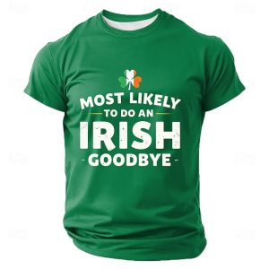 St Patricks Day Most Likely To Do An Irish Goodbye Funny Green T Shirt Mens Graphic Tee Shamrock Clover Irish Flag Humor Top Clothing Apparel S M L XL XXL XXXL #14041872