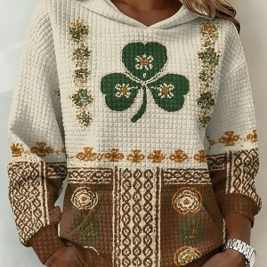 Women’s Pullover Hoodie Sweatshirt Floral Graphic Shamrock Warm Casual Print Long Sleeve Hooded Regular Tops Casual Street Dailywear Print Light Green Light Brown Dark Green Spring Fall #11885621