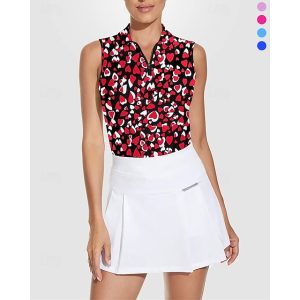 Women’s Heart Tennis Shirt Sleeveless Print UPF50+ Quick Dry Tennis Golf Badminton Zip Collar Tee Tshirt Top Pink Red Royal Blue Tennis Clothing #17486905