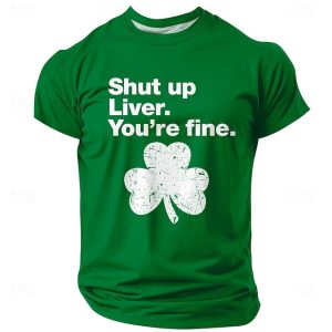 St Patricks Day Shut Up Liver Youre Fine Funny Irish Shamrock Green Men Short Sleeve T Shirt Clothing Apparel S M L XL XXL XXXL #15917118