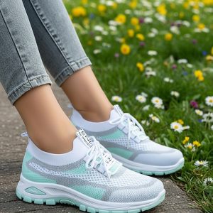 Women’s Purple Knit Mesh Sneakers – Breathable Lightweight Walking Shoes with Stylish Design for Sports and Casual Outings #19660155