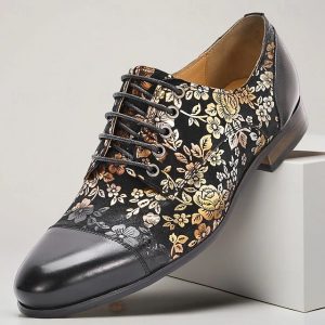 Men’s Elegant Leather Wedding Shoes – Black with Gold Floral Pattern, Premium Quality Footwear for Weddings and Formal Celebrations #11212656