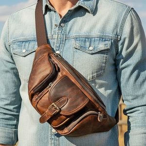 Men’s Genuine Leather Fanny Pack, Top-Grain Leather Material, Multiple Carrying Styles, Large Capacity, Stylish and Durable for Everyday Use and Travel #12956654