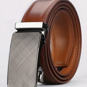 Men’s Genuine Leather Ratchet Belt with Carbon Fiber Automatic Buckle, Classic Business Style Adjustable Waistband for Professionals and Formal Occasions #19474542