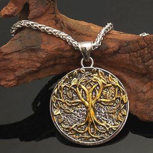 Men’s Viking Tree of Life Pendant Necklace – Alloy Material, Vintage Gold and Silver Design, Nordic-Inspired, Perfect Gift for Nature Lovers, Casual and Formal Occasions #19106248