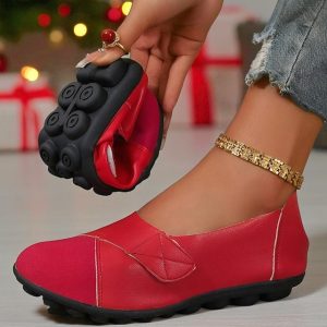 Women’s Red Flexible Foldable Flats with Soft Sole and Slip-On Comfort Design, Lightweight Casual Shoes for Christmas, Work, Travel & Everyday Wear #9947667
