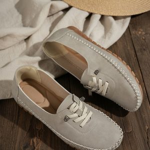 Women’s Pink Moccasin Loafers with Stitching – Soft Sole Slip-On Flat Driving Shoes for Nursing, Casual Walking & Daily Work #17215654