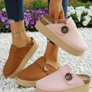 Women’s Platform Mules with Button Detail, Stylish and Casual Design, Ideal for Spring and Summer Outings, Everyday Wear and Vacation #15142539