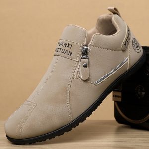 Men’s Beige Slip-On Shoes with Soft Upper – Comfortable Everyday Shoes for Casual Wear and All-Day Comfort #10384504