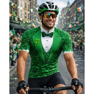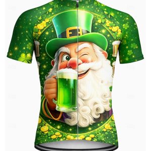 Men St Patrick Jersey Cycling Jersey Shamrock Floral Novelty Short Sleeve Bike Tee Tshirt Jersey Top with 3 Rear Pockets UV Resistant Quick Dry With Pockets Front Zipper Sports Green Clothing Apparel #13624425