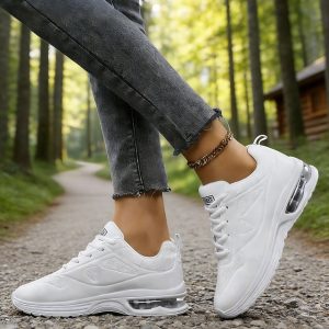 Women’s White Air Cushion Sneakers, Lightweight Walking Shoes with Comfortable Sole for Running, Gym, Outdoor Activities and Casual Everyday Wear #10727227