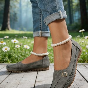 Women’s Blue Moccasin Flats with Buckle Detail – Comfortable Casual Slip-Ons for Spring & Summer, Perfect for Day Trips & Outdoor Activities #11135055