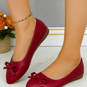 Women’s Red Flat Shoes with Bow – Comfortable and Stylish Ballerina Flats for Everyday Wear, Office and Commuting #19549799