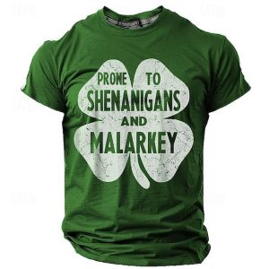 St. Patrick Men’s Graphic Four Leaf Clover Shamrock Prone to Shenanigans and Malarkey Lucky Irish T Shirt T shirt Tee Short Sleeve T shirt 3D Print Crew Neck Shirt Daily Designer Casual Sports #19443114