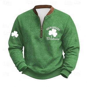 St. Patrick’s Day Men’s Shamrock St. Paddy’s Day Sweatshirt Sweatshirt Fashion Streetwear Daily Classic Long Sleeve Quarter Zip Outdoor Going out Festival Dark Green Green Army Green Printing Spring #19114421