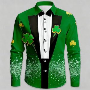 St. Patrick’s Day Men’s Clover Faux Collar and Suit Design Shirt Button Up Shirt Long Sleeve Fashion Casual Party Holiday Spring Fall Turndown 3D Print Collared Shirts Yellow Purple Orange Green #12350592