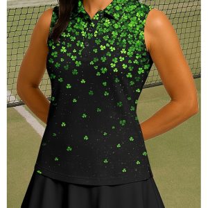 St. Patrick Aus Open Women’s Floral Clover Sport Shirt Golf Polo Shirt Tank Top Tennis Shirt Sleeveless Floral Buttons UPF50+ UV Resistant High Elasticity Moisture Wicking Breathable Volleyball #19253222