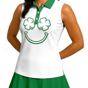 St. Patrick Aus Open Women’s Clover Sport Shirt Golf Polo Shirt Tank Top Tennis Shirt Sleeveless Floral Buttons UPF50+ UV Resistant High Elasticity Moisture Wicking Breathable Volleyball Tennis Golf #15247253