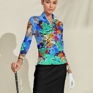 Women’s Golf Polo Shirt Sky Blue Long Sleeve Top Ladies Golf Attire Clothes Outfits Wear Apparel #10938545