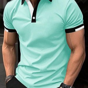 Men’s Sports Polo Shirts Golf Shirt Casual Sports Tops Ribbed Polo Collar Short Sleeve Fashion Basic Solid Color Patchwork Summer Regular Fit Black White Red Blue Green Sports Polo Shirts #11066559