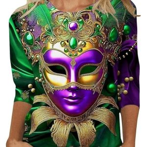 Carnival Women’s T Shirt Graphic Vintage Fashion Stylish Long Sleeve Crew Neck Regular Tops Daily Print Purple Spring Fall #14133349