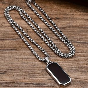 Men’s Stainless Steel Pendant Necklace – Black Onyx Hexagonal Design, Stylish Chain, Perfect for Casual and Formal Occasions. #10266093