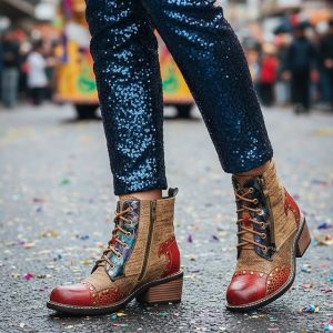 Women’s Boho Chic Lace-Up Ankle Boots – Unique Festival Shoes with Vintage Charm & Carnival Vibes #13062310