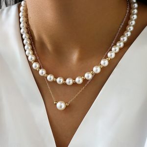 Elegant Layered Pearl Necklace for Women – Gold Chain with White Simulated Pearls, Classic Vintage Jewelry for Weddings, Parties and Formal Events #14658684