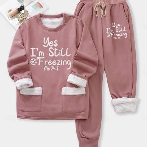 Women’s Pajamas Set Fleece Lined 2 Sweatshirt Tracksuits Pieces Fleece Lined Sweatsuits Top and Pant Letter Warm Comfort Soft Home Daily Bed Warm Breathable Crew Neck Pullover Pant Elastic Waist Fall #14243319