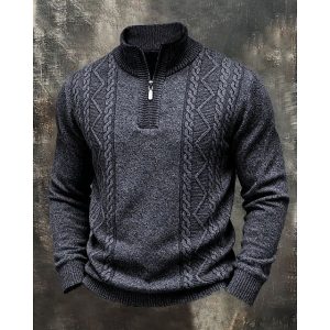 Men’s Sweater Quarter Zip Sweaters Knit Sweater Knitted Pullover Ribbed Knit Regular Tops Knitted Plain Quarter Zip Fashion Streetwear Casual Daily Wear Clothing Apparel Fall Winter Burgundy Blue S M #19506540