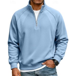Men’s Polo Shirts Quarter Zip Polo Daily Wear Date Quarter Zip Long Sleeve Fashion Basic Plain Zipper Spring Fall Regular Fit Blue Apricot Black White Red Navy Blue Polo Shirts #12529087