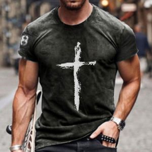 Men’s Cross T Shirt Distressed T Shirt Short Sleeve T shirt Crew Neck Shirt Vintage Designer Basic Casual Daily Weekend Blue Red Dark Gray Summer Clothing Apparel Plus Size S M L XL XXL 3XL 4XL #8684198