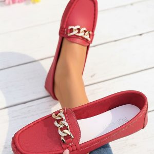 Women’s Red Chain Moccasin Loafer – Soft Comfort Slip-On Shoes for Women, Classic Chic Style for Work, Office, Travel, Daily Wear & City Walking #10335174
