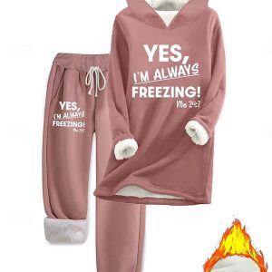 Women’s Daily Stylish Two Piece Sets Tracksuit Pants Sets Long Sleeve Hooded Graphic Letter Drawstring Print Casual Daily Black Pink Dark Pink Fall Regular Fit #12110845