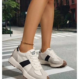 Women’s Retro White & Grey Platform Sneakers – Casual Chunky Dad Shoes with Black Contrast Stripe for Daily Streetwear, Urban Commuting & City Walking #18179137