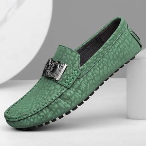 Men’s Green Faux Leather Loafers, Elegant and Versatile for Casual Outings and Summer Events #19897574