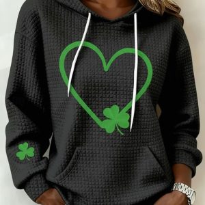 St Patrick’s Day Women’s Pullover Hoodie Sweatshirt Graphic Shamrock Casual Long Sleeve Hooded Regular Tops Casual Street Pocket Print Ash Black White Pink Summer Spring Fall #18773860
