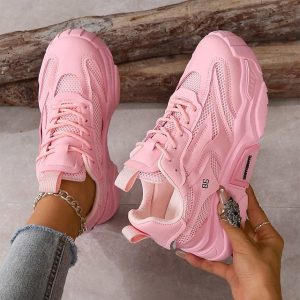 Women’s Pink Chunky Mesh Sneakers – Trendy Athletic Casual Shoes for Walking and Running #9630950