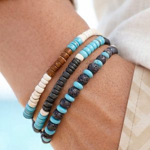Men’s Bohemian Bracelet Set, Mixed Materials with Turquoise and Lava Stone, Perfect for Vacation and Casual Daily Wear #13055299