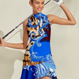 Women’s Golf Dress Sky Blue Sleeveless Dress Ladies Golf Attire Clothes Outfits Wear Apparel #11649603