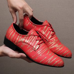 Men’s Red & Gold Striped Faux Leather Dress Shoes – Stylish Formal Footwear for Weddings & Business Events #17376940
