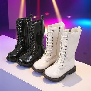 Korean Idol Inspired Pop Star Costume Shoes Girls’ White Knee High Lace-Up Boots Fashion Performance Footwear for Dance and Stage Shows #15178957