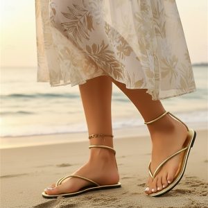Women’s Silver Flip Flops – Elegant Strappy Sandals with Adjustable Ankle Strap, Perfect for Beach, Summer Vacations and Casual Days #17517714