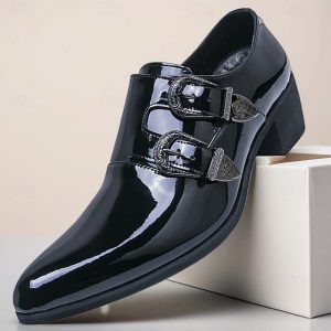 Men’s Faux Leather Double Buckle Formal Shoes – Elegant Wedding Footwear for Groom and Wedding Guests #19676820