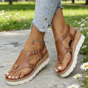 Women’s Purple Studded Platform Sandals with Adjustable Strap and Wedge Heel, Trendy Summer Shoes for Casual Wear, Travel, Beach and Outdoor Activities #14527333