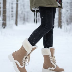 Women’s Faux Fur Lined Lace-Up Winter Boots – Warm Suede Snow Boots with Non-Slip Sole for Cold Weather and Outdoor Activities #14874036