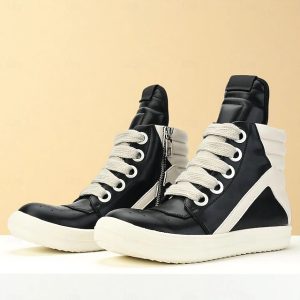 Men’s Black and White High-Top Sneakers, Casual Lace-Up Shoes for Active Lifestyles, Perfect for Casual Outings, Street Style and Weekend Adventures #19625478