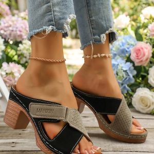 Women’s Casual Chunky Heel Sandals – Soft Textured Upper with Buckle Strap, Comfortable Slip-On Clog Heels, Vintage-Inspired Everyday Shoes for Work, Walking, Travel, Casual Outings & Daily Wear #17357902