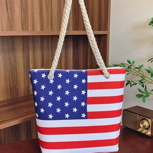 Women’s Canvas American Flag Tote Bag, Large Capacity Zip Top Shoulder Handbag with Rope Handles, Patriotic Style for Independence Day Celebration, Beach Vacation & Everyday Casual Use #15472499